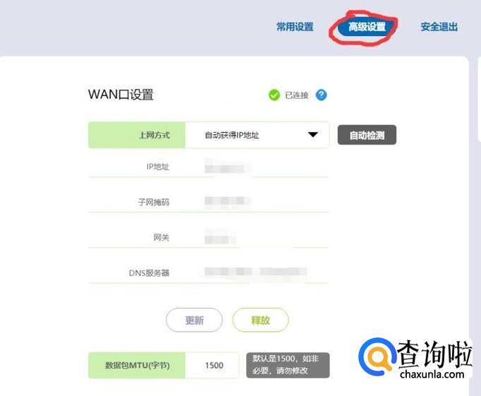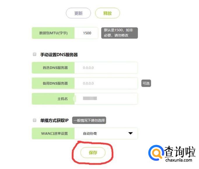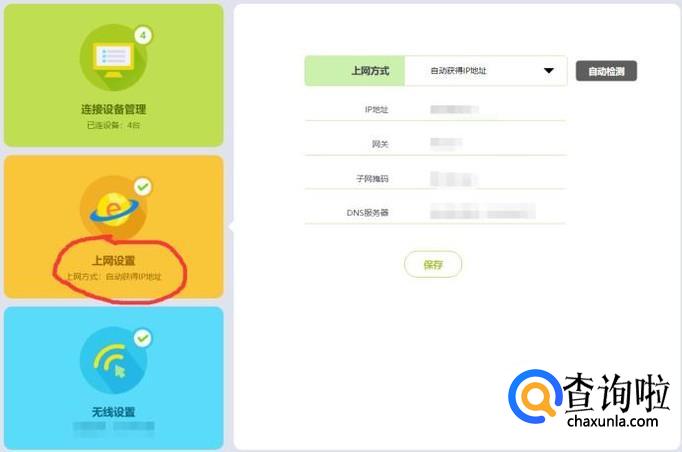 在第二个菜单“上网设置”中,可以进行上网方式的设置