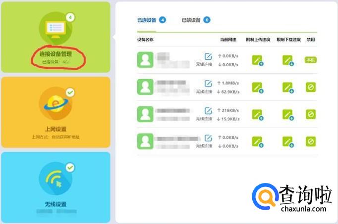 在设置页面左边可以看到有三个设置菜单,在第一个菜单中可以进行连接设备管理
