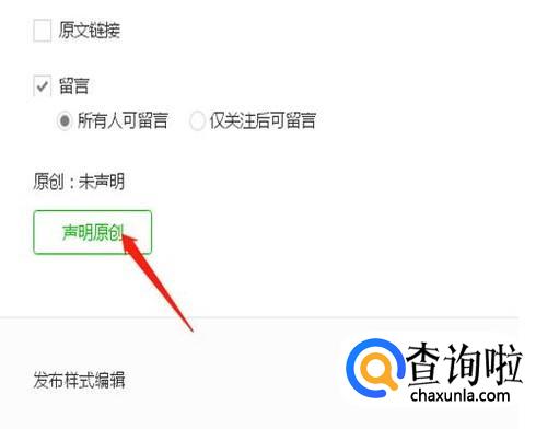文章内容编辑好后,鼠标往下拉,有一些功能键,根据你的要求操作就可以了,如果你的文章是原创是原创文章,不想被转载,在“原创声明”里操作就可以了。