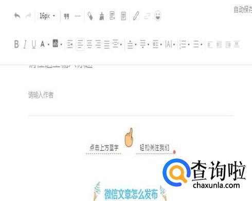 点击空文档后就可以编辑文章了,如果你只是发一篇普通平凡的文章,直接在编辑框里编辑就好。如果你想要对文章有些修饰,比如添加个可爱的小标题背景,添加个漂亮的文本框,就要先在“微信编辑器”里编辑好了,再复制到微信公众号的编辑框里。