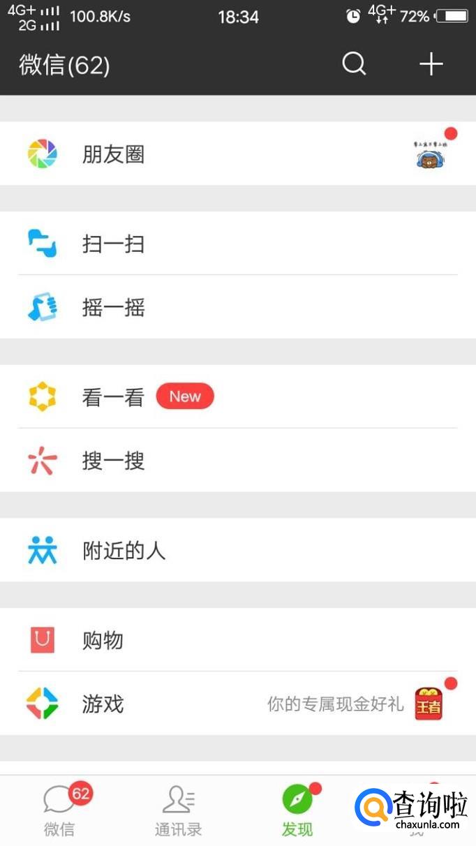 然后我们在相关页面点击下方的发现,再点击朋友圈,进入到朋友圈的页面。