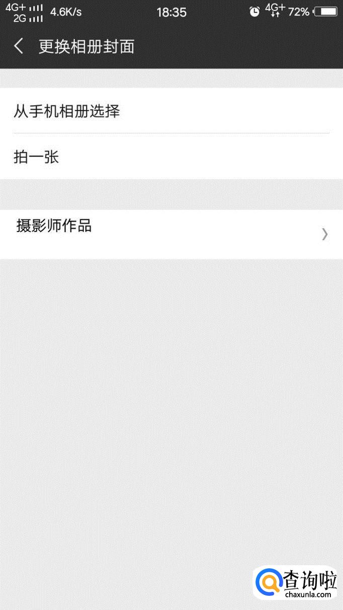 紧接着我们点击自己的头像旁边的后面的背景,再点击更换相册封面。