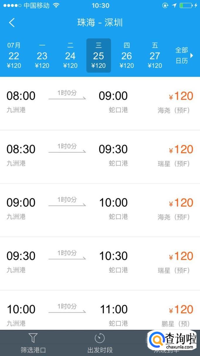 出发地选珠海,目的地选深圳,选择你预计出行的日期,点查询。