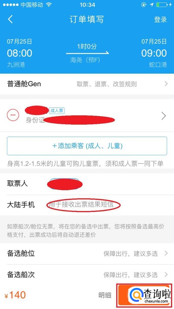 填写乘客姓名和身份证号;