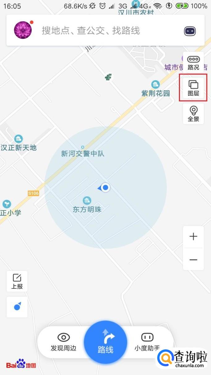 首先,打开百度地图应用App主页面,点击页面右侧“图层”标识按钮。
