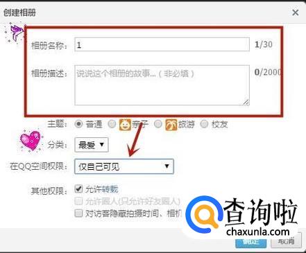 然后新建一个相册并选择仅自己可见,如下图所示。