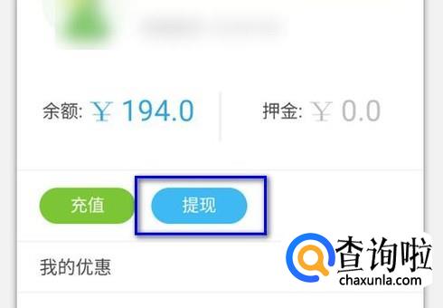 选择【用户中心提现】后,页面会显示自己的押金余额,点击【提现】;