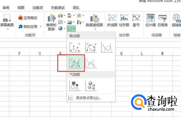 接下来点击插入菜单,然后在散点图下面选择带直线和散点的图形,如下图所示