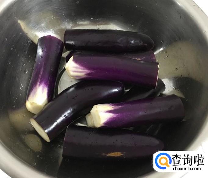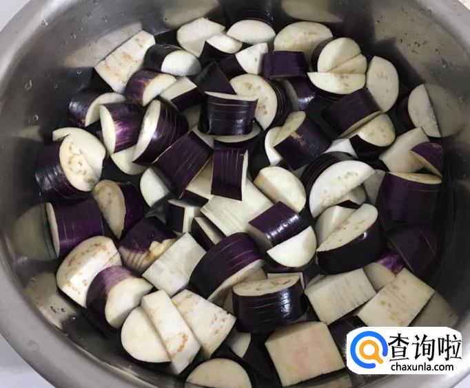 新鲜茄子去蒂后,清水洗净,切成小块。