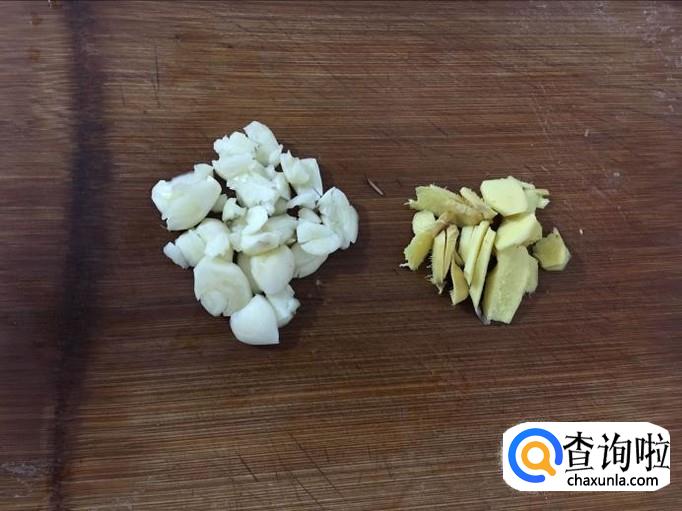 大蒜去皮后,切碎;姜清水洗净后切成片。