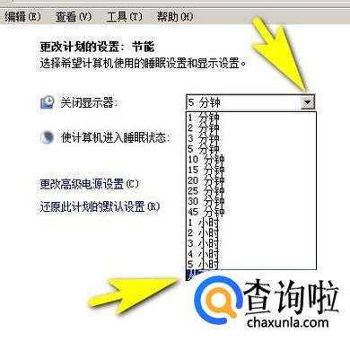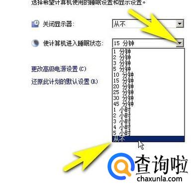 再点击使计算机进入睡眠状态的下拉按钮,弹出的选项中选择:从不