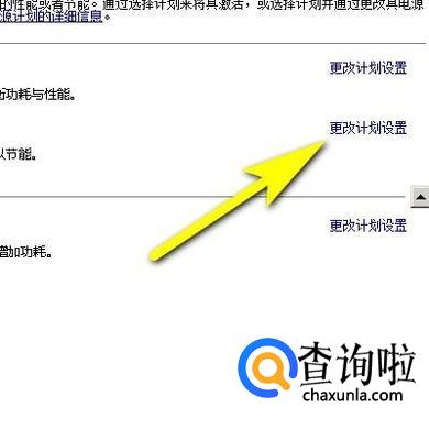 再转到另一个界面,在“节能”右侧这里点击:更改计划设置