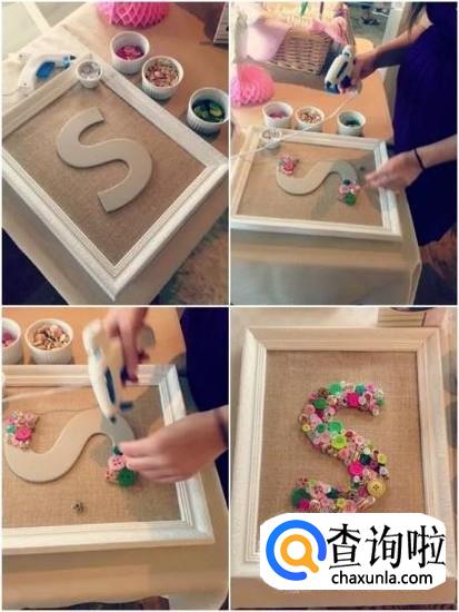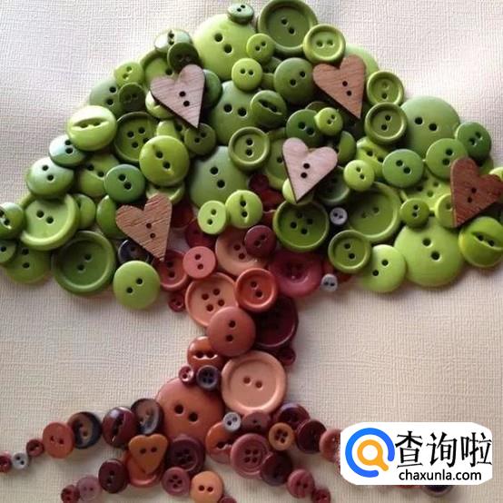 只需要将钮扣分个颜色,找个板框,定个简单的造型,将钮扣用热熔胶贴上去就好了。简单好操作,分分钟做出一副有格调的立体画。 可以和孩子一起玩,有趣又益智!