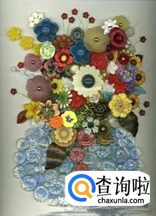 升级版的钮扣画,结合一些小的彩色配件,让作品更精致