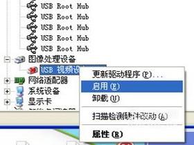 这是可以看到下面显示出的“USB视频设备”前是打红叉号的。在上面右键单击,点“启用”。