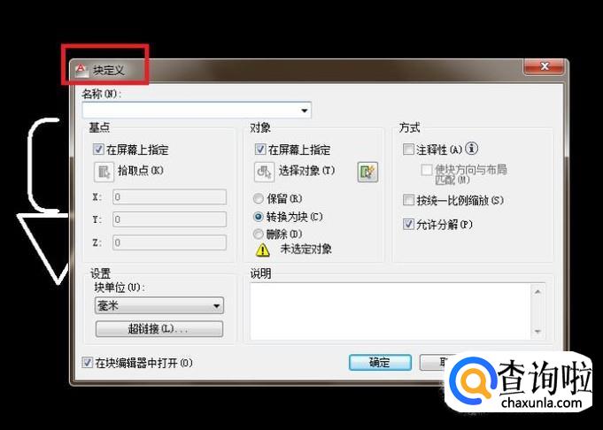 出现“块定义”对话框。