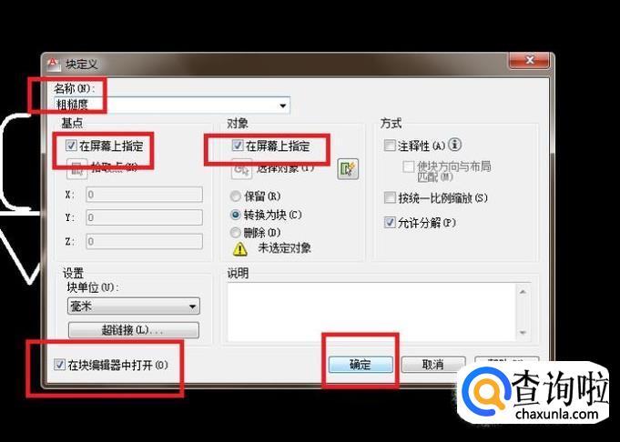 然后,选择刚刚创建的名为“粗糙度”的块,