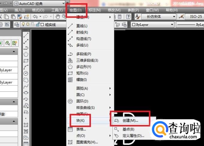 首先,点击标题栏中的“绘图”,使其弹出下拉菜单,