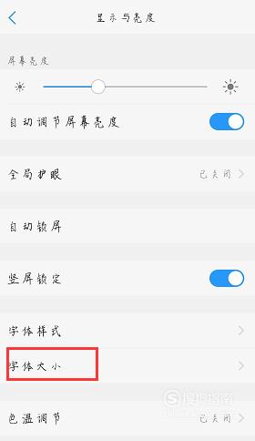 回到显示与亮度界面,选择“字体大小”,如下图所示。