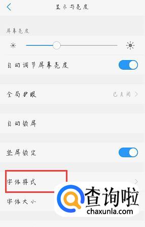 在显示与亮度界面选择“字体样式”,如下图所示。