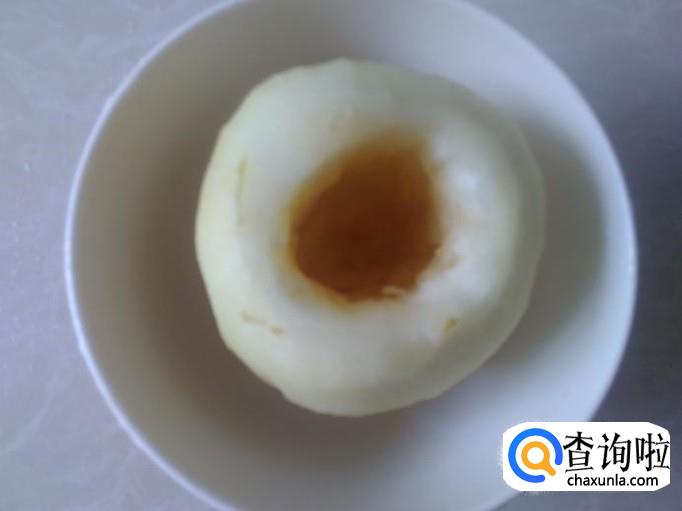 把红糖枸杞填到雪梨洞里。