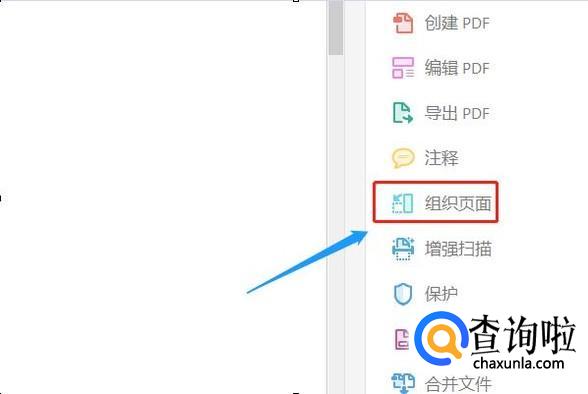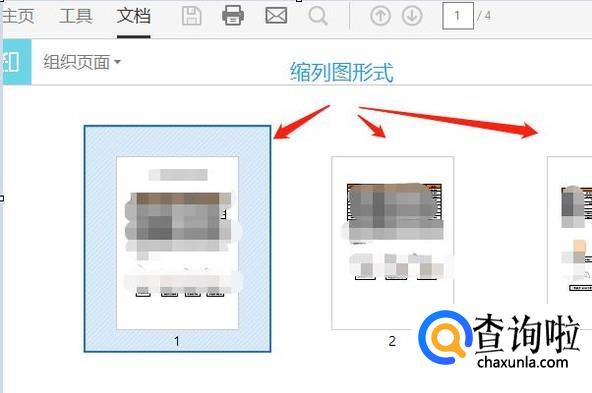 接着在软件最右侧找到一项“组织页面”,点击以后此PDF文件会以缩列图的形式展现出来,我们可以一目了然的看到一共有多少页,如下图;