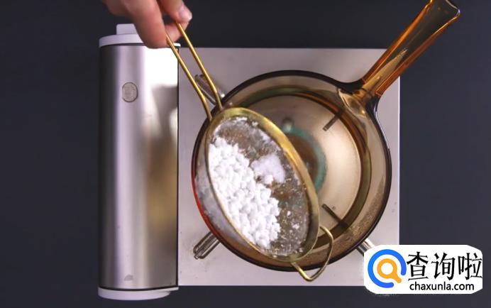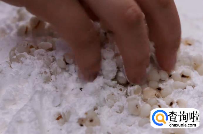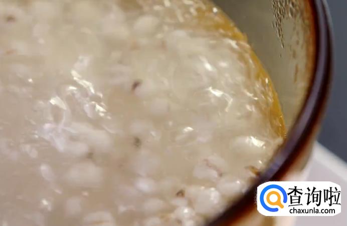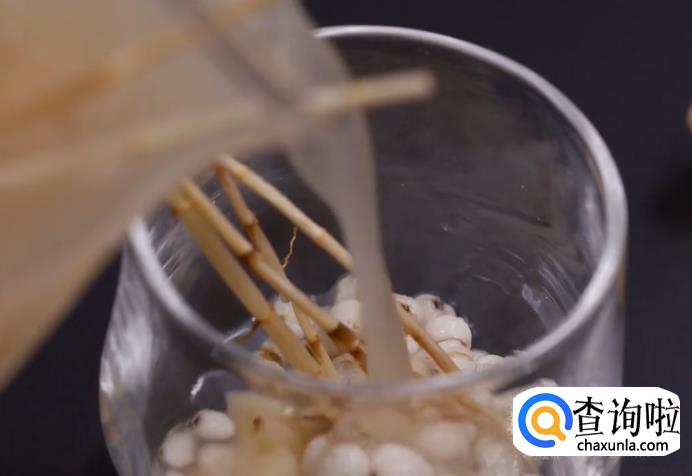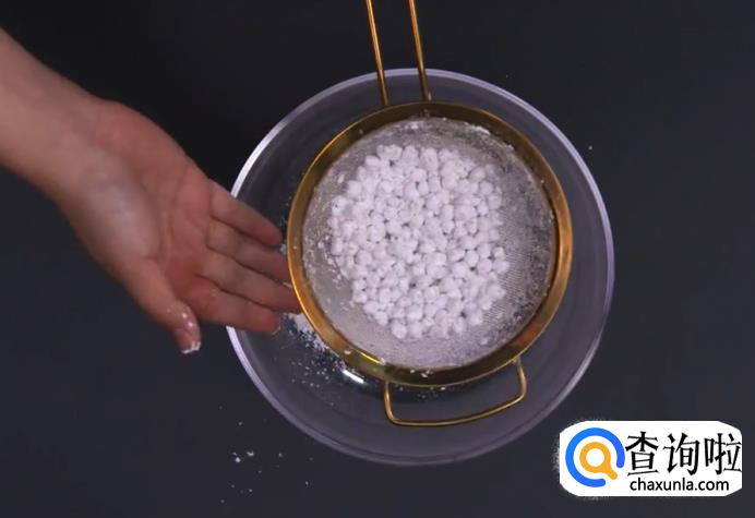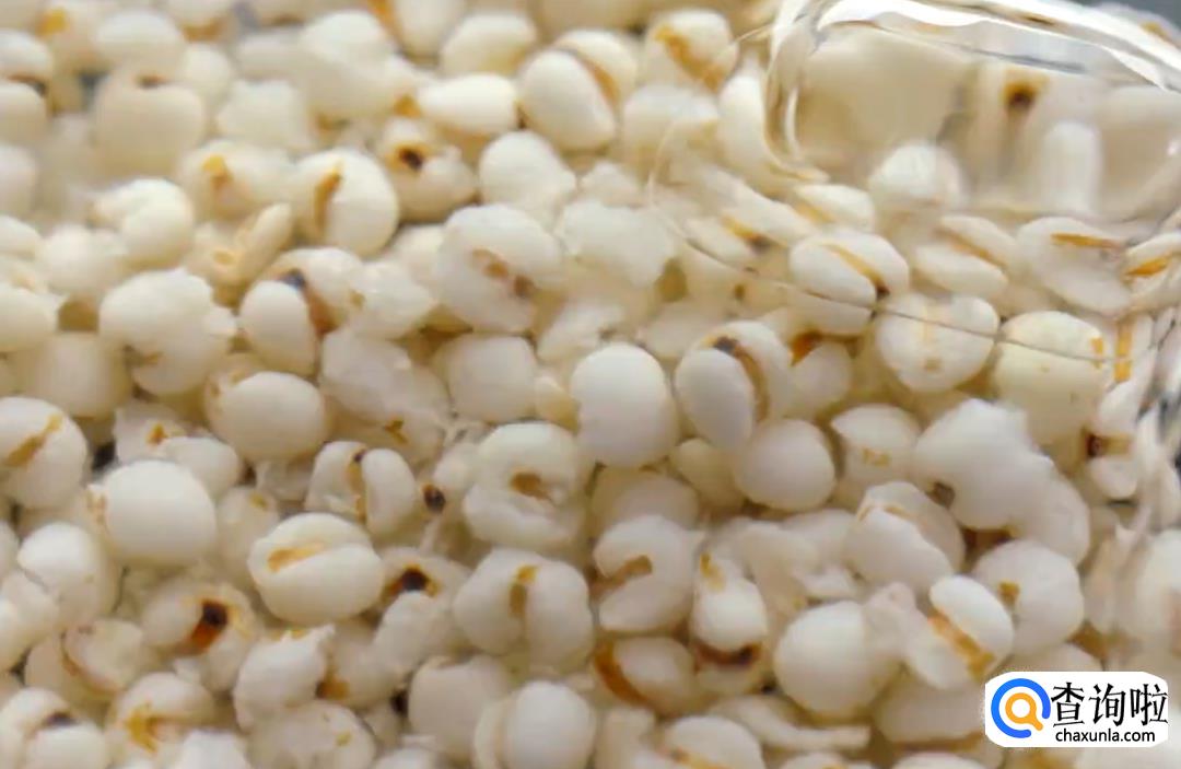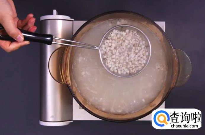将过筛后的薏米用沸水煮至透明后,捞出过冰水,并用勺子将其打散。