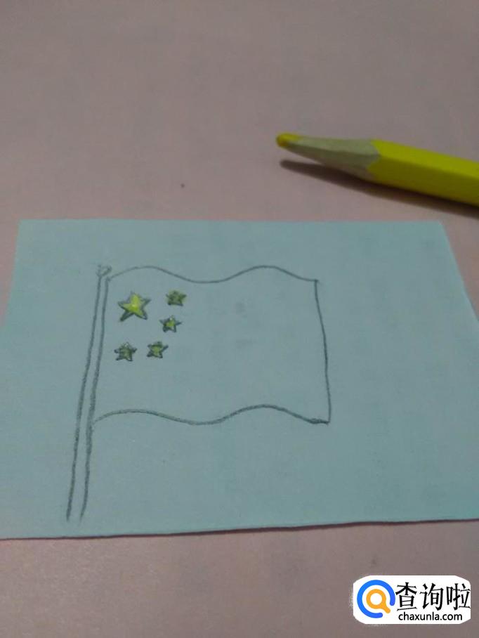 用红笔涂除了五颗星以外的旗子部分。到这里,五星红旗就画完了。