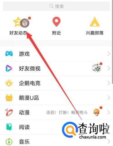 进入之后,在“动态”页面点击好友动态,进入下一页面,如图所示。
