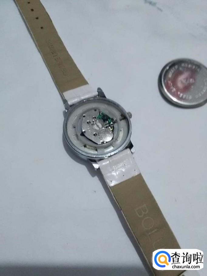 翘开表盖后,可以看到电池侧面有一个弹性的金属小棍卡住电池。