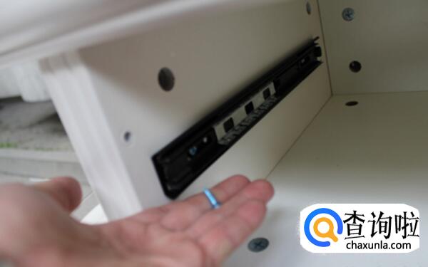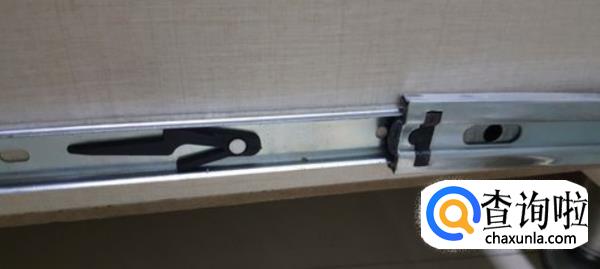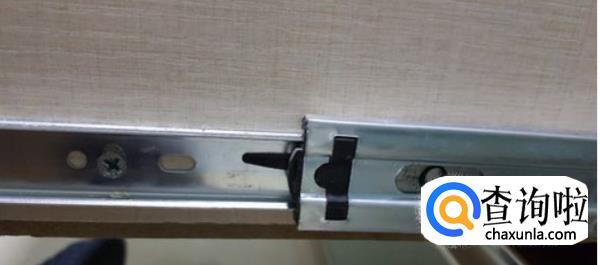 大家把抽屉尽量往外拉,这时出现一个长条黑色锥形卡扣。