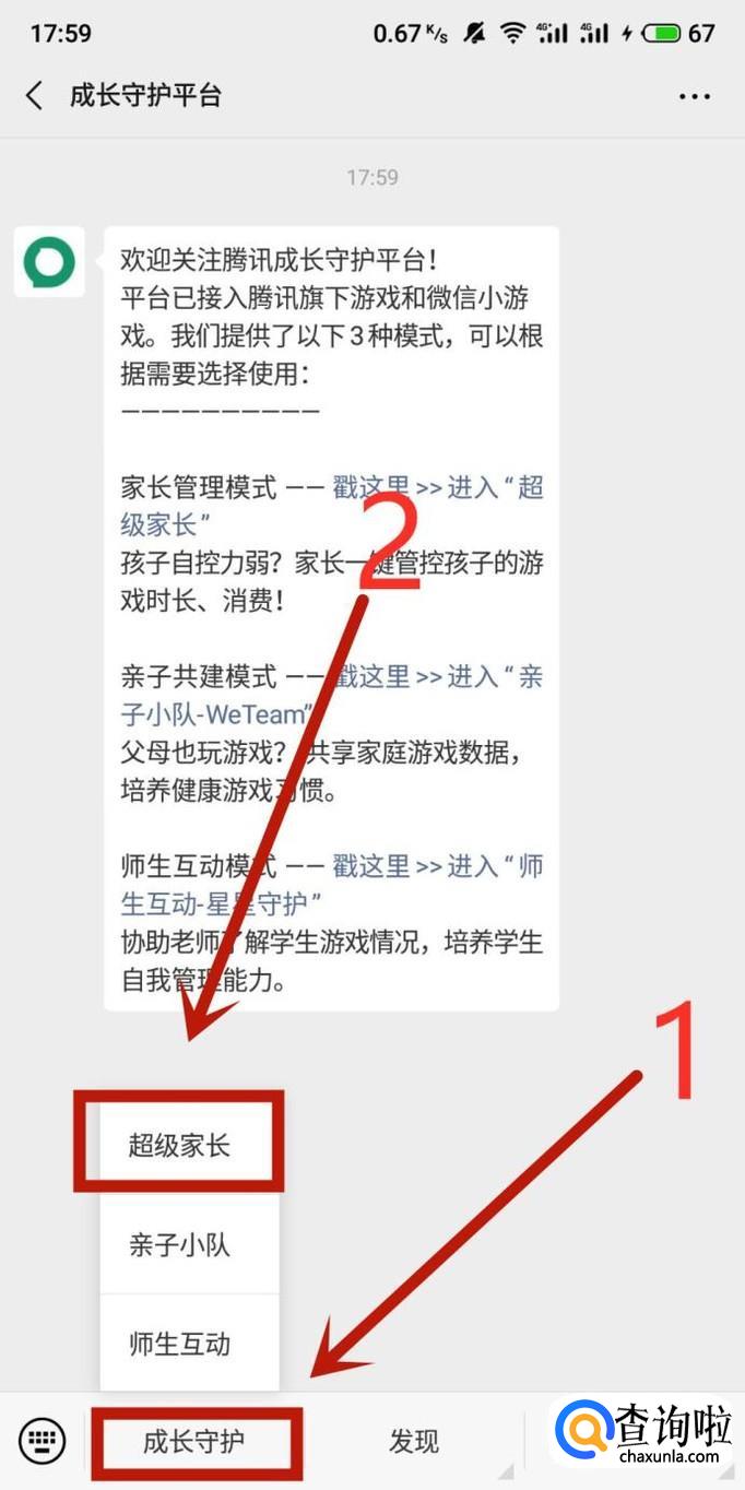 进入之后,在“成长守护”位置选择“超级家长”,进入下一页面。