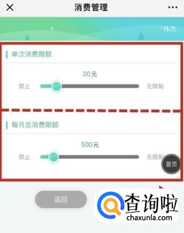 点击超级家长→消费管理→设置完成。
