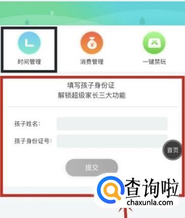 点击“时间管理”,填写孩子的真实姓名、身份证件信息。填写提交通过后,可管理孩子的游戏时间,游戏充值,游戏禁玩等。