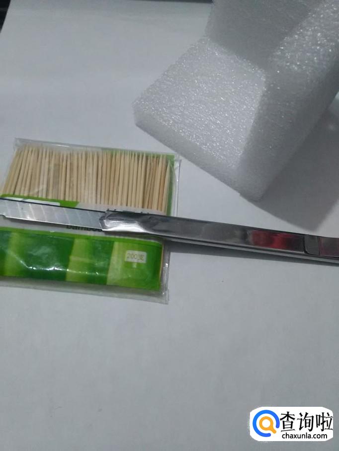 牙签、裁纸刀、泡沫塑料