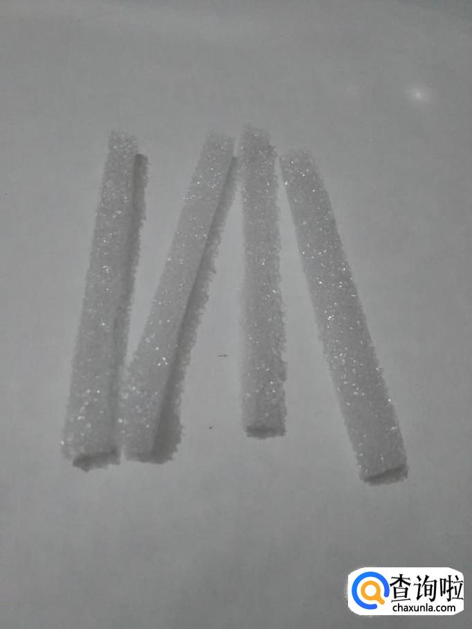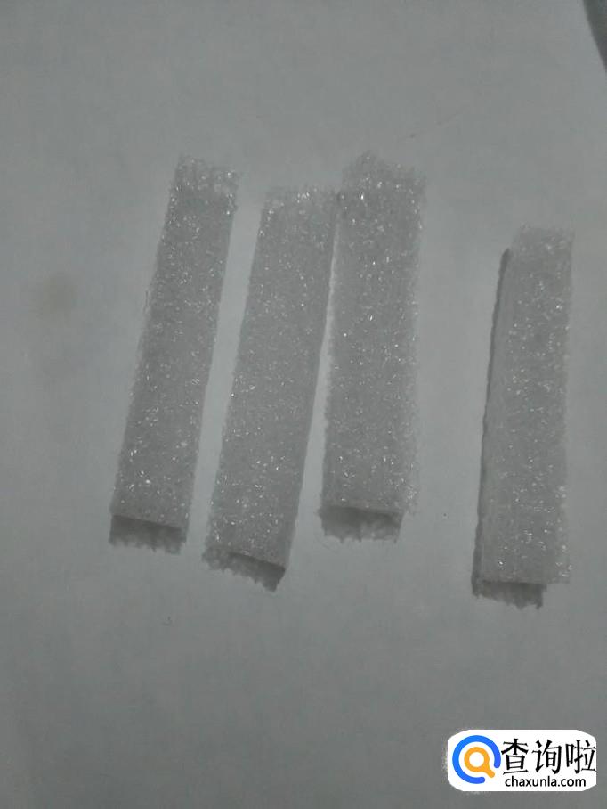 再用裁纸刀从泡沫上裁下四根一样长的长方体小条。