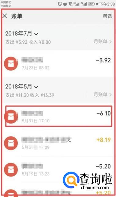 弹出的界面,我们便可以看到零钱明细了,我们长按其中一个账单;