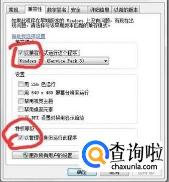 接下来在快捷方式的属性选项卡里面的兼容性勾选“以兼容形式运行这个程序”以及“以管理形式运行这个程序”