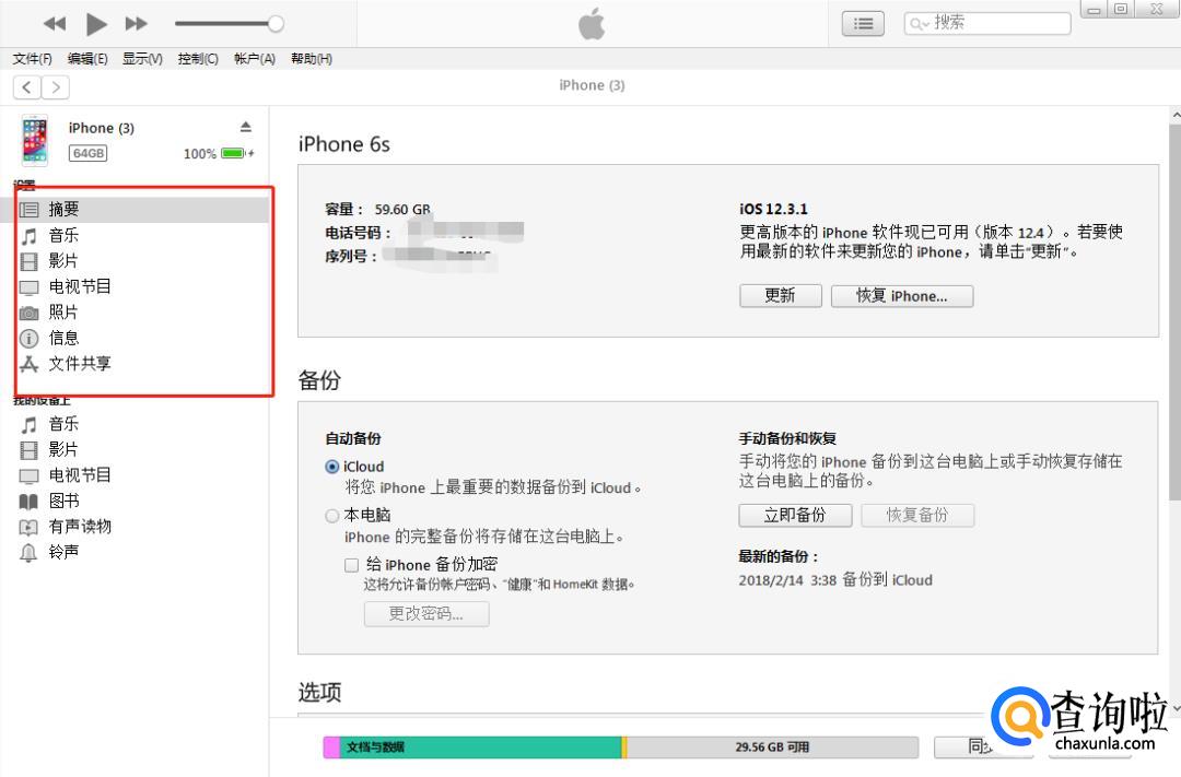 点击iPhone后,进可以管理咱们的iPhone啦!顶部的一排就是可以管理的分类,比如音乐,影片,铃声,信息之类的。