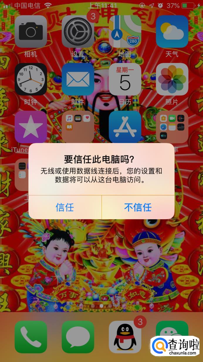将苹果手机插上苹果原装的数据线然后在连接到电脑的USB口,苹果手机会弹出是否信任新的设备,点击“信任”然后就会输入你设置的手机解锁密码。输入完成以后,电脑上面就可以你的苹果手机的内部存储器这些了。