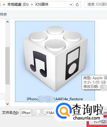 然后在弹出一个小窗口中,选择提前准备好了的苹果手机固件,再点击“打开”。接着 iTunes 就会自动提取固件,并把固件系统恢复到手机上。这样手机里的系统也就更新啦!