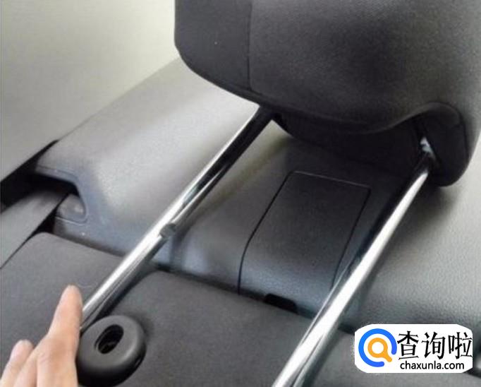 先调节我们汽车头枕的按钮用手按住头枕下方的按钮,可以调节这个头枕的上下距离.