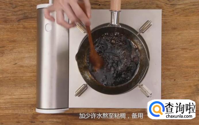 取一块玫瑰红糖放入锅中,加少许水熬至粘稠,备用。