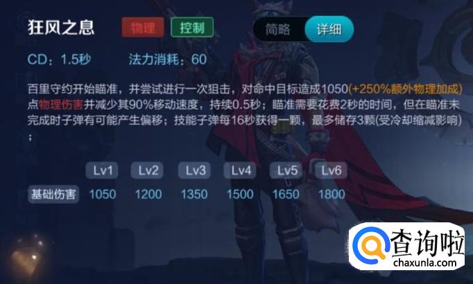 二技能狂风之息,是一个狙击技能,瞄准需要花费2秒的时间,为瞄准子弹会发生偏移。