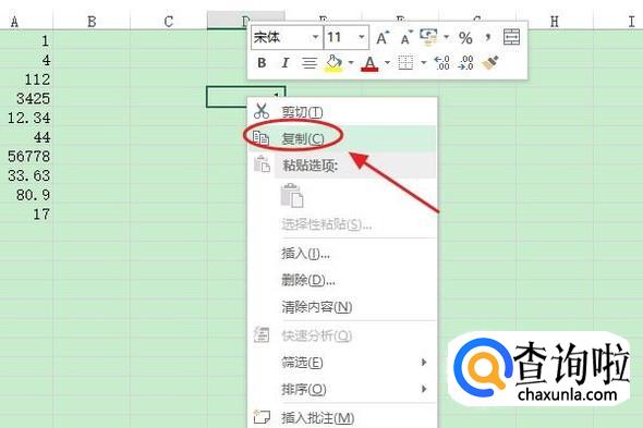 然后我们在其他任意空白单元格输入数值“-1”,如图一;点击选中此单元格以后,然后点击鼠标右键“复制”;