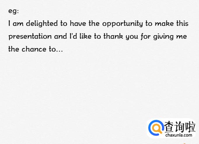 英语经典开场白之四:感谢主办方,表达谢意。如果是受邀致辞类发言或者晋级类演讲比赛,首先感谢主办方会给人一种考虑周到有礼貌的印象。
