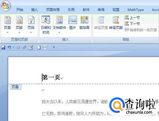 首先,我们打开一篇多页的文档作为演示用。我们插入页眉,此时我们可以看到所有页的页眉都是相同的。