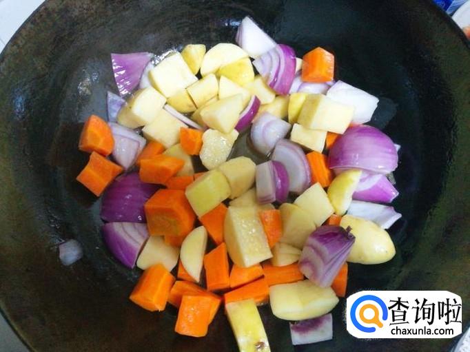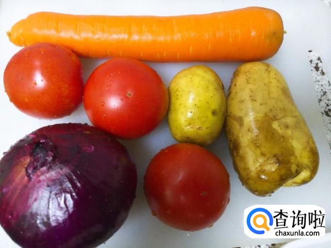 前往市场或者超市购买新鲜的胡萝卜、土豆、洋葱,将其洗净并去皮。将胡萝卜、土豆切成块状,洋葱切成丝状。