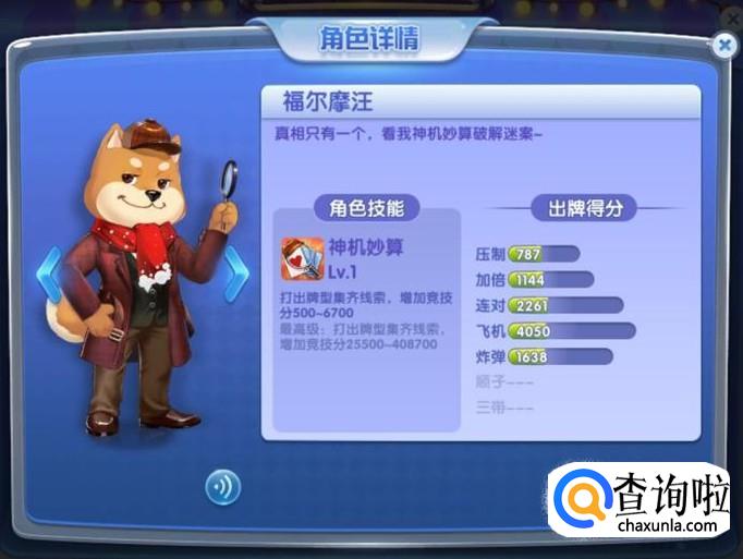福尔摩汪,技能是打出给定的牌型增加技能分。对竞技模式和排位有用,但是会对你出牌产生一定的影响,有可能你为了打出它的牌型而导致输了,所以出牌时要顾全大局