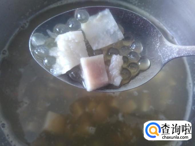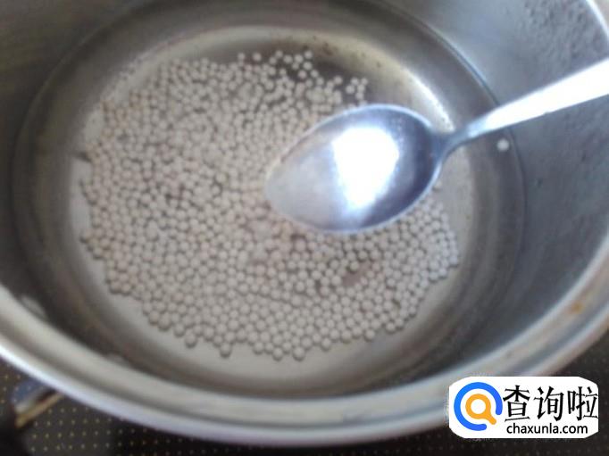 煮沸后熄火,盖上盖子焗十几分钟,反复几次这样,一直煮到西米变透明状。